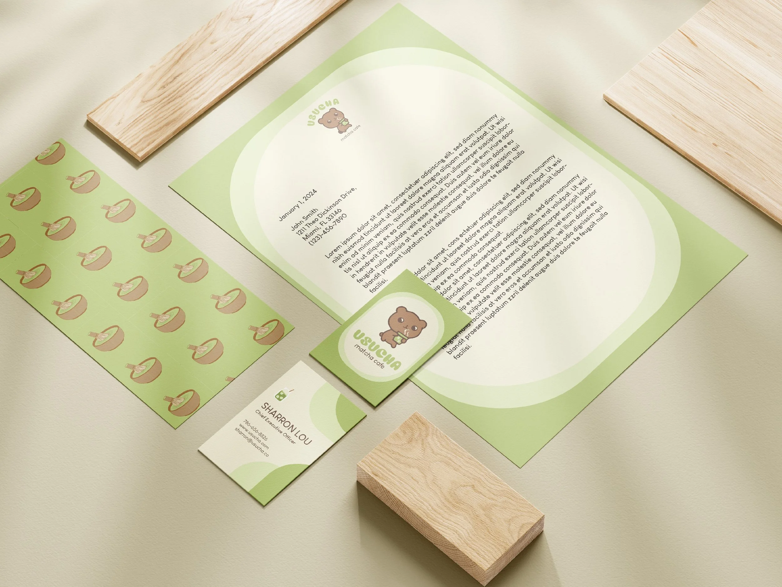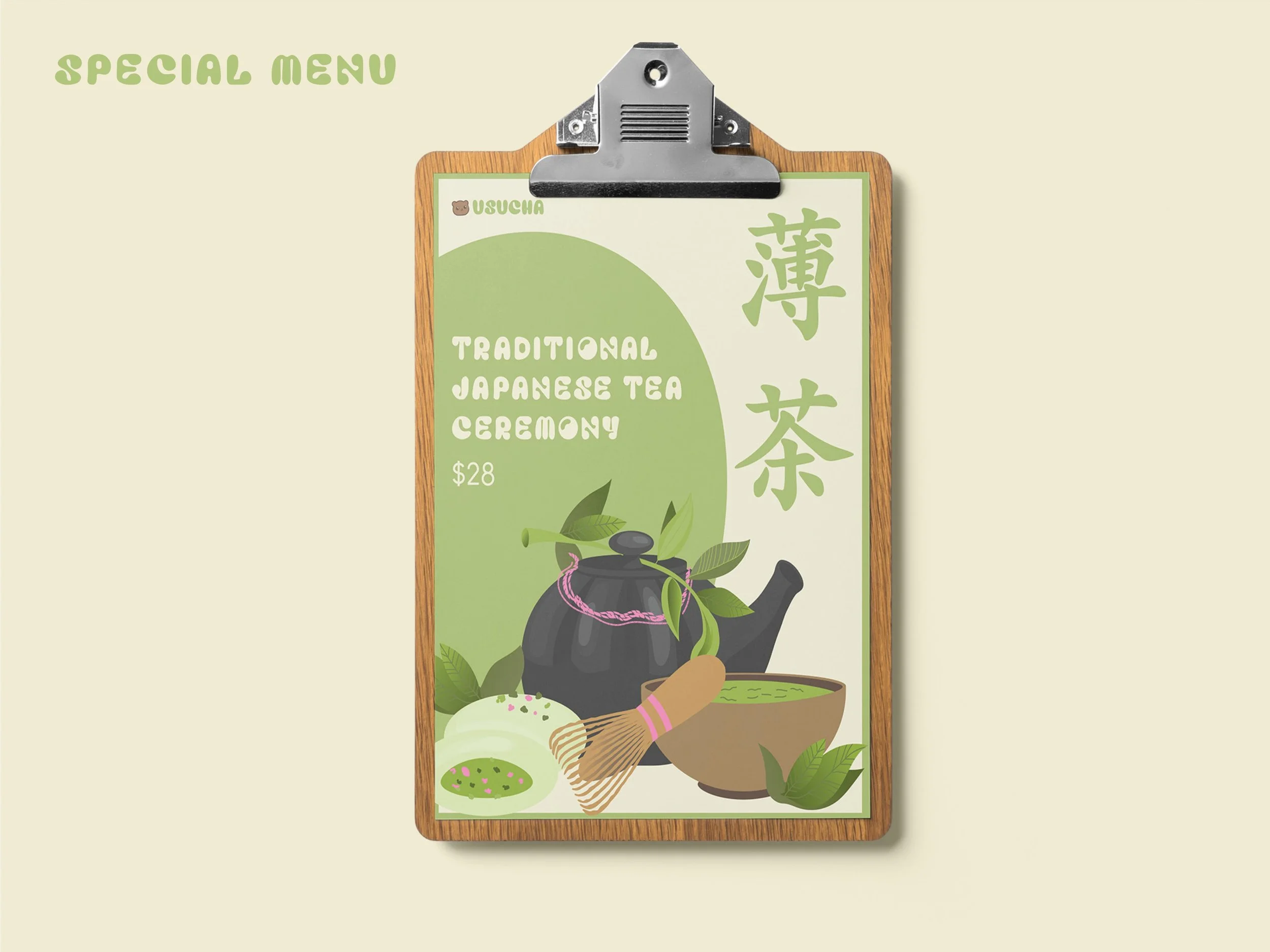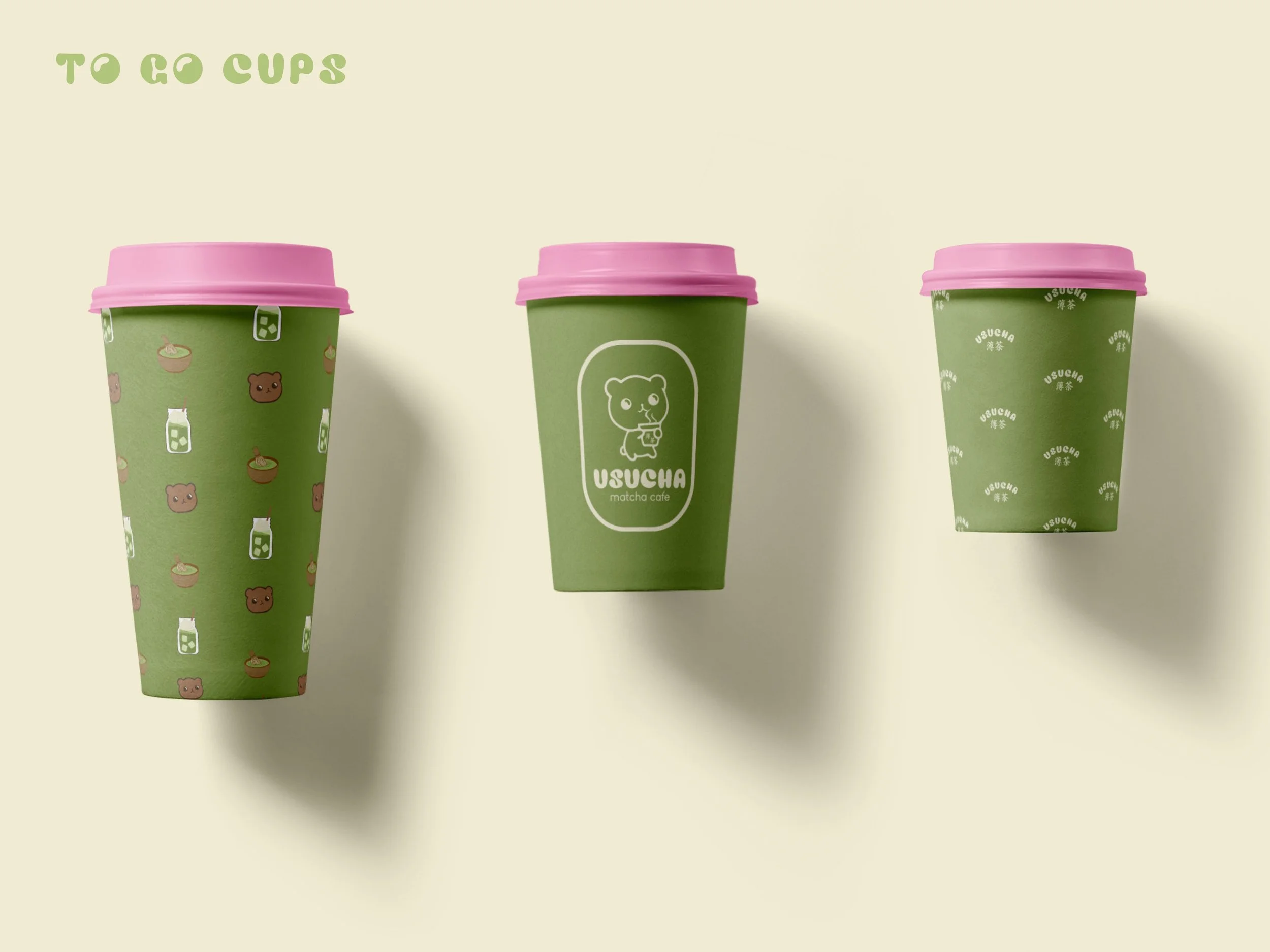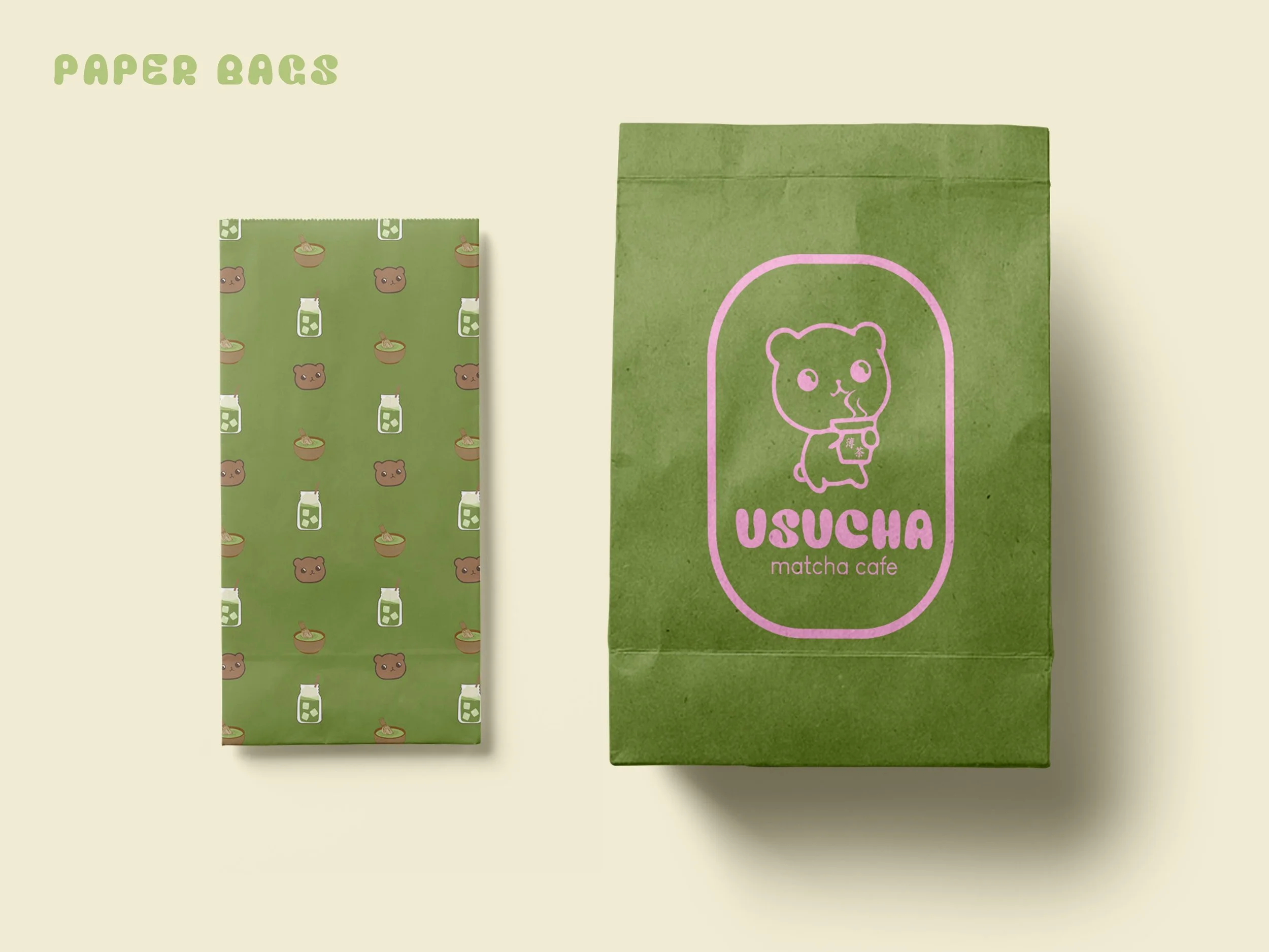 My matcha obsession runs deep—so deep that I designed my own matcha café from scratch. Usucha is a visual identity system I created to cherish my love of matcha. The cafe’s logo features a hand-illustrated, kawaii-inspired bear holding a warm cup of matcha. The color palette draws inspiration from the cozy atmosphere of traditional Japanese cafés and the natural tones of matcha leaves. The menu concept features a range of matcha-based drinks, desserts, and baked goods.